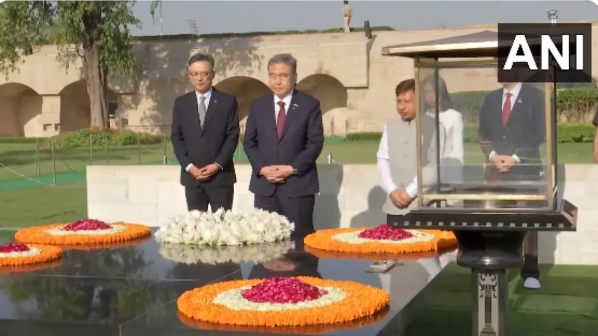 दक्षिण कोरिया के विदेश मंत्री पार्क जिन ने शनिवार को राजघाट पर महात्मा गांधी को श्रद्धांजलि अर्पित की। विदेश मंत्री पार्क जिन ने राजघाट पर आगंतुक पुस्तिका (Visitor’s Book) पर हस्ताक्षर किए। दरअसल, पार्क दो दिवसीय भारत दौरे पर हैं।