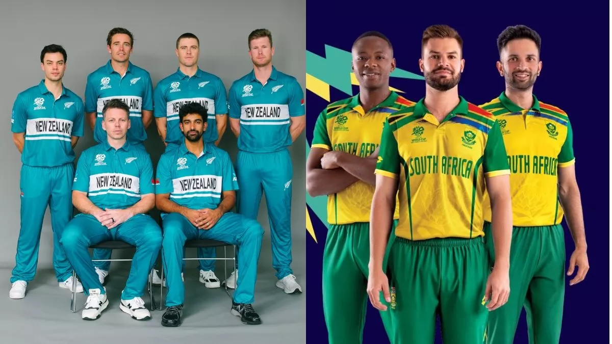 न्यूजीलैंड और दक्षिण अफ्रीका ने आगामी टी20 वर्ल्ड कप के लिए अपनी नई जर्सी का अनावरण किया है। न्यूजीलैंड की टीम अपने रेट्रो लुक में नजर आएगी। न्यूजीलैंड क्रिकेट ने अपने आधिकारिक सोशल मीडिया हैंडल पर नई जर्सी का अनावरण किया जो 1990 के समय के समान लग रही है। वहीं दक्षिण अफ्रीका की जर्सी पीले रंग की नजर आई जिसमें राष्ट्रीय ध्वज रंग और किंग प्रोटी फूल दिखा।